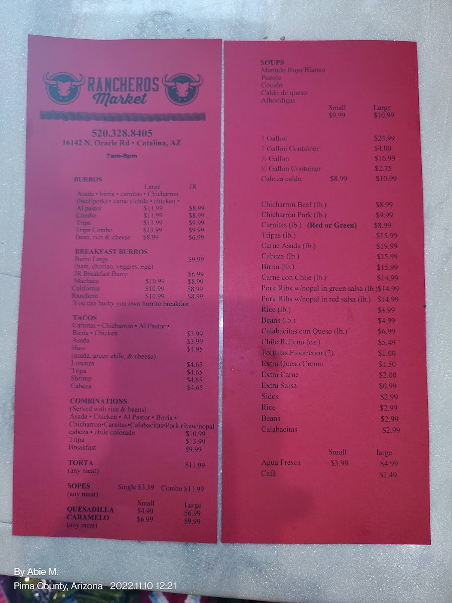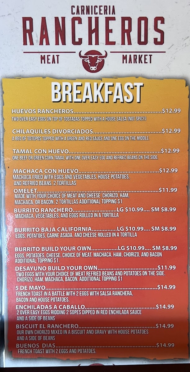 The menu at Rancheros Market offers a welcoming blend of traditional Mexican comfort food and everyday essentials, combining the feel of a casual breakfast spot with the convenience of a well-stocked grocery and butcher shop. Whether you're stopping in for a warm morning meal or picking up fresh ingredients to take home, the menu provides a range of satisfying options that feel both familiar and thoughtfully prepared.